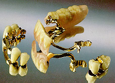 Die restlichen eigenen Zähne werden mit speziell geformten Gold- oder Keramikkäppchen überkront, auf die eine Kombination aus Brücke und Metallgerüst aufgeschoben wird. Bei dieser Variante entfallen störende Verbindungsbügel am Gaumen bzw. im Zungenspitzenbereich.